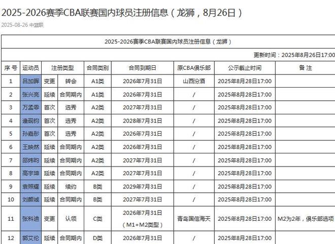 雷速体育8月26日,根据CBA官方的公示,广州男篮完成12人名单注册,郭艾伦为队内的顶薪球员,高达8人为A类球员。