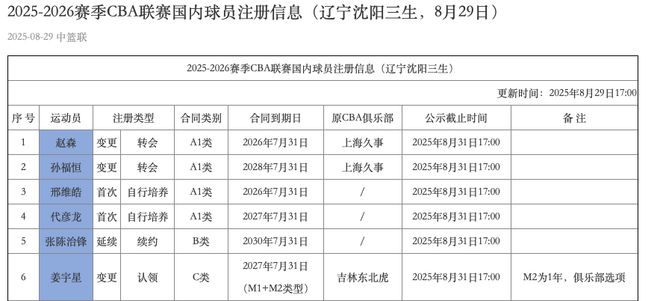 - 360搜索:辽宁男篮注册名单更新:姜宇星签下两年C类合同
