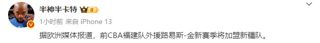 新疆男篮这个休赛期放走了核心后卫赵睿,导致球队阵容实力大幅度下滑。除了本土阵容实力大打折扣之外,新疆男篮在外援阵容方面也没有大手笔的投入,球队已经先后签下劳森和纳托尔两名外援,据媒体人“半神半卡特”透露:“前CBA福建队外援路易斯-金新赛季将加盟新疆队。”相比较小外援纳托尔,路易斯-金的砍分能力更加突出,新赛季应该会以第一或者第二外援的身份亮相。