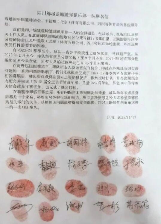 除了教练组已经集体罢工外,国内知名媒体也透露,四川男篮球员、教练、工作人员日前已经向篮协、CBA公司、四川省体育局发布联名信,请求解决四川男篮的欠薪问题。另外四川男篮上个赛季的外援马里奇也在社交媒体上发声,表示自己也存在被欠薪的问题。目前来看的话,四川男篮的情况已经非常糟糕,很可能会无法出战新赛季的CBA联赛。