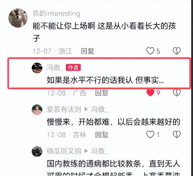 还有网友给冯傲加油,“冯傲加油,下次主场见。”冯傲的回复是,“我在替补席怎么打?”“如果是水平不行的话我认,但事实...”