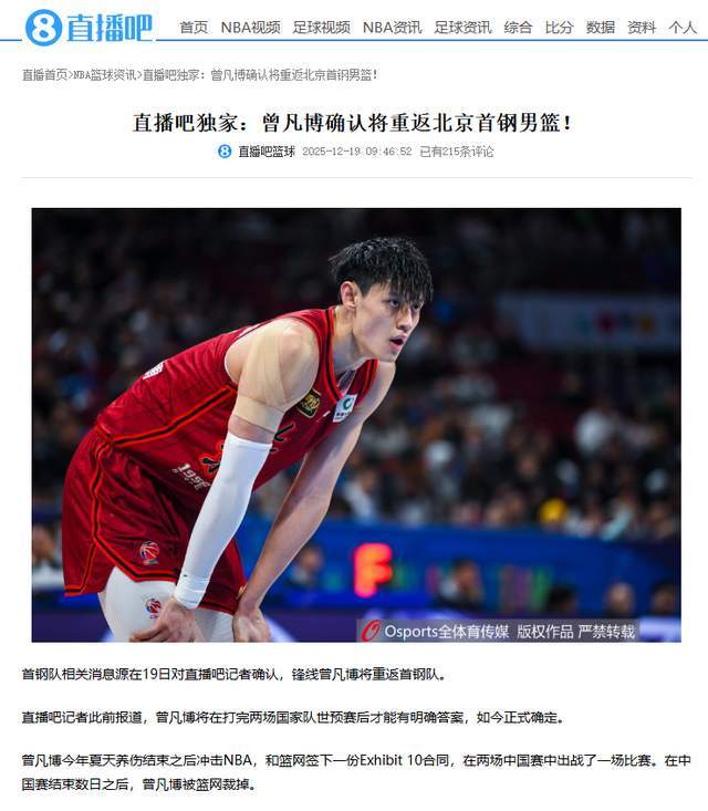 :独家:曾凡博确认将重返北京首钢男篮!