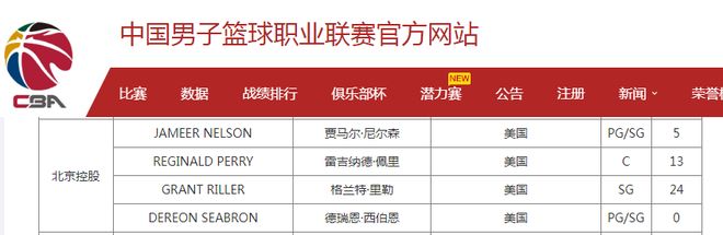 北京时间1月2日,CBA官方公布最新的外援注册信息,北控男篮注册新外援小贾马尔-尼尔森,他是前魔术总决赛全明星后场老贾马尔-尼尔森的儿子,有望在1月3日对阵广东男篮的比赛迎来加盟首秀。北控男篮官方宣布:“”我俱乐部已为外援小贾马尔-尼尔森完成注册,后者将代表北控男篮征战CBA联赛。