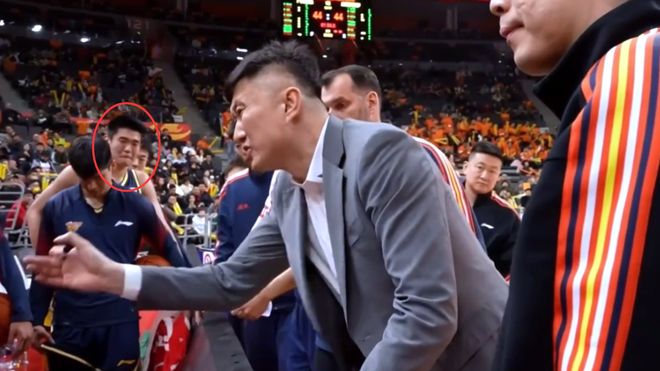 第一节最后半分钟,王洪泽弧顶持球想给吊球给徐杰,但出现了传球失误,一个回合后,王洪泽立马被杜锋换下。