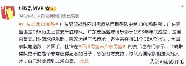 广东加冕1000胜球队引热议!杜锋:为国家队输送大量人才感到自豪