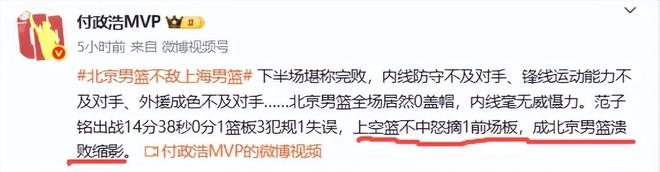 赛后媒体人付政浩对北京队的表现大失所望,指出“下半场堪称完败,内线防守不及对手、锋线运动能力不及对手、外援成色不及对手……北京男篮全场居然0盖帽,内线毫无威慑力”,他还喷了顶薪球员范子铭,他说“范子铭出战14分38秒0分1篮板3犯规1失误,上空篮不中怒摘1前场板,成北京男篮溃败缩影。”两外主打第四节的球员范子铭和方硕合砍0分,怪不得末节全队仅得12分,怪不得付政浩说下半场堪称完败,怪不得吐槽范子铭是北京队溃败的缩影。