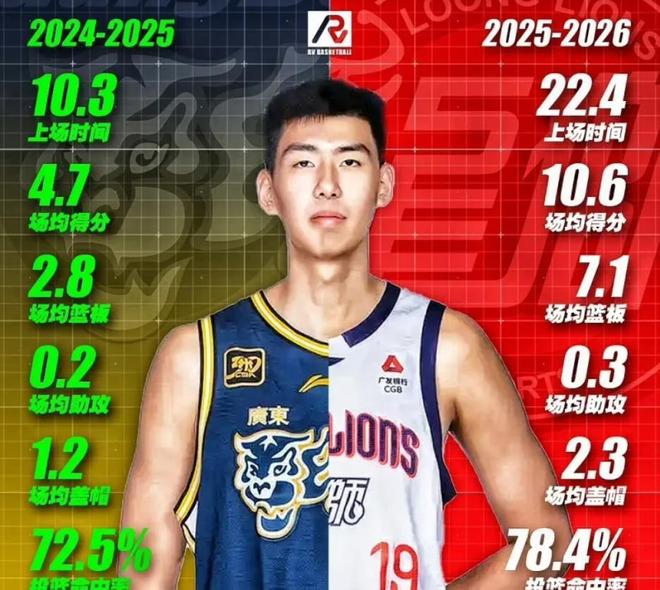 这个赛季徐昕在广州龙狮队得到了大量的上场时间,也有很多的球权,他终于迎来了爆发。徐昕的身高有2米26,和姚明一样高,虽然在身体对抗和技术方面远不如姚明,但是这样的静态身体天赋在国内也是非常少见的。此前在广东队他的出场时间很有限,也无法展现自己的天赋,根据杜锋指导所说是徐昕的体能不足,此外还有骨密度不够,无法出场太多的时间。但是本赛季到了广州龙狮队这些问题好像都没有了,场均22.3分钟,经常出场25分钟以上,也有单场30+分钟的出场时间,体能问题似乎并不存在。