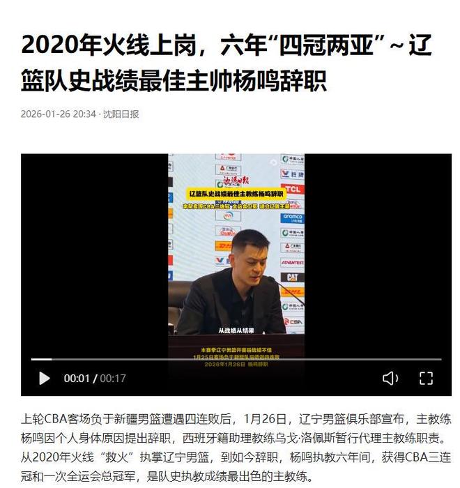 但在这场比赛开始前,辽宁队主教练杨鸣宣布了离职。