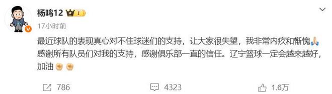不过,仔细看辽宁队在杨鸣离队时发的通过,会发现有这样一句话。