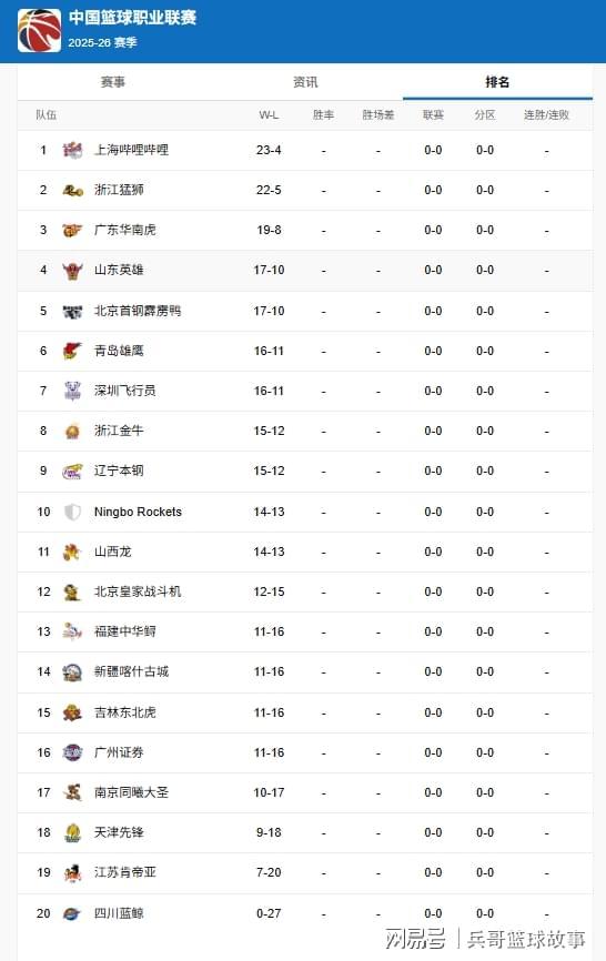 CBA最新排名: