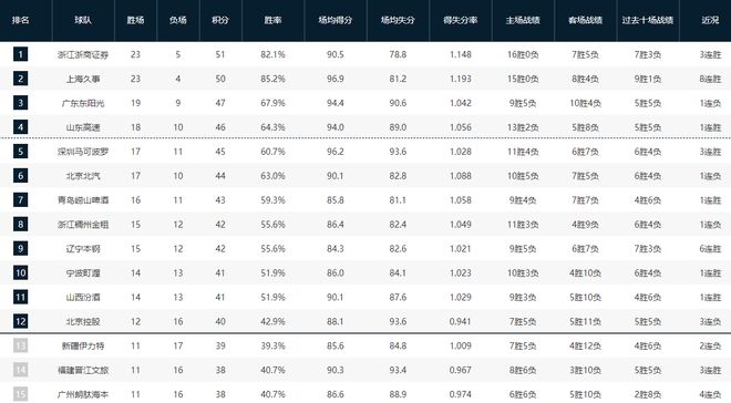 CBA排名又乱了!广厦杀回第一,广东惨遭爆冷,山东大胜保住第四
