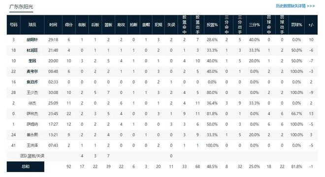 其实杜锋说的并没有错,这场比赛广东男篮主要还是输在了防守端,能够让场均只能得到81.5分的江苏男篮在这场比赛中得到93分,就充分说明了这个问题。防守质量不高,对手的命中率就会比较高,这点也体现得非常明显,江苏男篮这场比赛的整体命中率高达59%,三分球命中率也高达47.6%。
