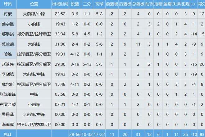 北京队数据如下: