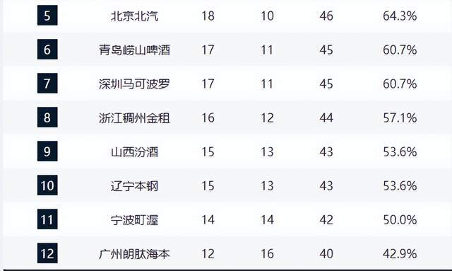 广东队则陷入四面楚歌的困境。尽管仍位列第3,但身后4至7名球队紧咬不放,山东与北京仅落后1个胜场,竞争白热化。北京队本轮力克辽宁,士气高涨,外援状态回暖,球队信心显著提升,成为冲击前四的最大搅局者。青岛与深圳延续连胜势头,前者凭借外线火力持续攀升,后者依靠团队协作稳步上行,两队均对广东的季后赛席位构成直接威胁。