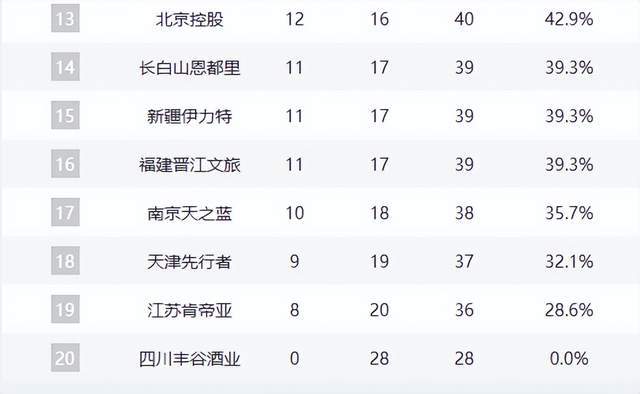 福建、同曦、天津、江苏等队仍在为最后一线生机拼杀,而四川队至今未尝胜绩,0胜28负垫底,赛季已无悬念。