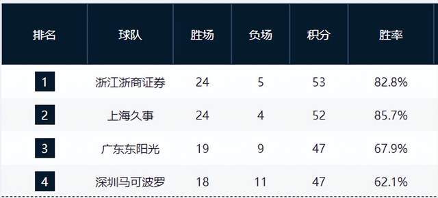 上海队以24胜4负紧随其后,因少赛一场,在争冠主动权上仍占优。双方将在下一轮直接对话,此役或成常规赛冠军归属的“天王山之战”。广东队19胜9负暂列第三,但排名已岌岌可危——深圳队在主场以118-91大胜天津队,斩获18胜11负,强势杀回积分榜第四位,直接威胁广东的前三席位。