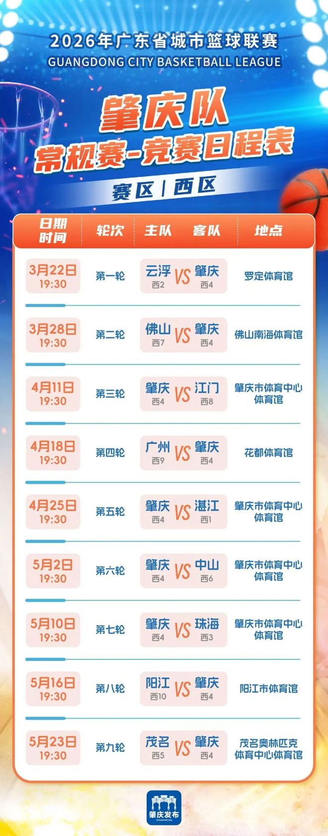 肇庆队将在3月28日19点30分