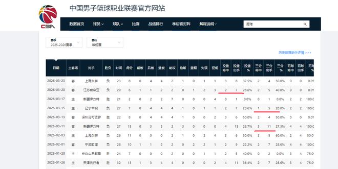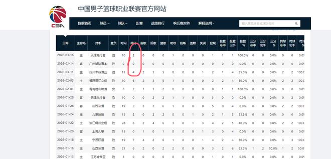 在第二阶段已结束的六场比赛中,胡明轩有两场正负值全队最低,分别是对阵上海时的-20、主场对阵新疆时的-7。