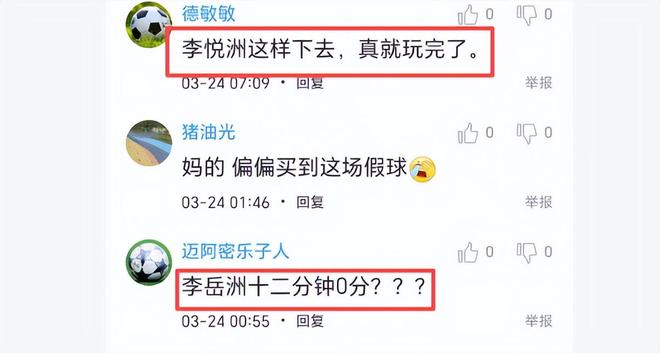 球迷对他也很失望,他们说:李悦洲这样下去,真就玩完了。不知大家对李悦洲有何评价和建议。