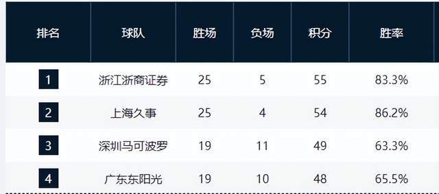 卫冕冠军重回第1,黑马5连胜冲到第3,广东跌至第4,山东掉出前4