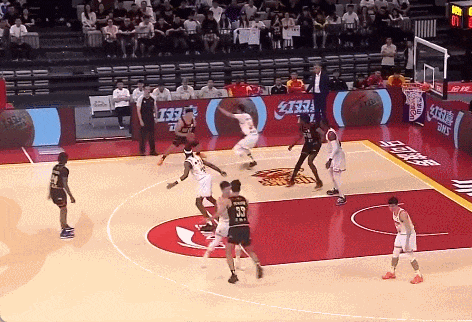连续两个转身过人,重重包围中抛投打进。