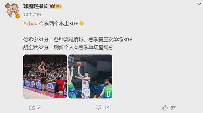 至于当今中国男篮最好的内线胡金秋,也在最近广厦队客场102-95击败天津队比赛中,不到30分钟就以投篮15中13狂轰32分5板2助2断。