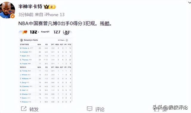 北京记者勇方方发文点评:如果你是一个没看过CBA的篮网球迷,看完这场比赛,你根本没法判断ZENG到底水平如何。