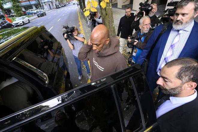 ▲10月23日,波特兰开拓者队主教练昌西·比卢普斯在提审后离开法院