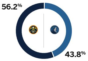 ESPN预测明日掘狼胜率:掘金56.2%,森林狼43.8%