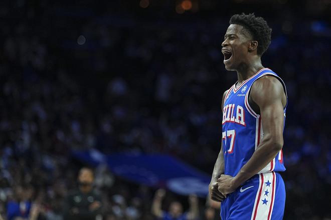 在恩比德缺席又因为下流庆祝动作被罚5万美元的情况下,球队后场双子星马克西与探花埃奇库姆稳定输出,奇兵格莱姆斯也打破纪录强势完成蜕变。