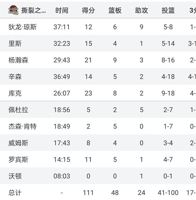g联赛,撕裂制成混音队vs南湾湖人,前者是开拓者的下属球队,而南湾湖人则显而易见。这场比赛,杨瀚森继续首发出场,他打了29分钟,投篮16中8砍下21分9篮板3助攻1抢断3盖帽,表现相当不错,关键时刻连中2记三分,差点帮助球队完成逆转(111:113输2分)。从这场比赛中,我们能明显看到杨瀚森的进步,以及他还存在的一些问题,想要重回NBA,他必须提升自己。