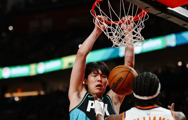 中段杨瀚森上篮打进,随后杨瀚森助攻西索科轰进三分球,比赛最后两分钟,杨瀚森接到球后强起被帽,随后抢回篮板完成2+1!最终开拓者110-127不敌太阳,遭遇三连败。但比较有趣的是,开拓者替补在场全部赢分,首发平均输21分!