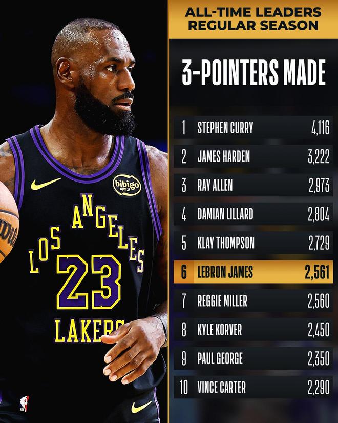 全场比赛,詹姆斯出战29分钟,投篮7中4,三分3中2,得到11分3篮板12助攻1抢断,一战轰下6大纪录。第一,詹姆斯正式成为NBA历史上唯一一位征战满23个赛季的球员。第二,本场比赛詹姆斯拿到11分12助攻,这是詹姆斯连续1293场比赛得分达到10分及以上。第三,目前40岁325天的詹姆斯成为NBA历史上赛季首秀战中取得两双数据最年长的球员。第四,詹姆斯成为NBA历史上常规赛单场助攻上双年龄第二大的球员,仅次于斯托克顿。第五,詹姆斯本场只出手7次,这创下了他个人职业生涯至今单场比赛出战超25分钟时出手次数最低纪录。第六,詹姆斯生涯已命中2561记三分球,超越雷吉·米勒独占历史第六。