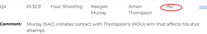 第二次是漏判,发生在距离第四节结束还有1分32秒,国王的穆雷在防守时与火箭的汤普森的手臂发生接触,干扰了后者的投篮动作,这应该吹防守犯规。这次漏判是国王获利,火箭吃亏。