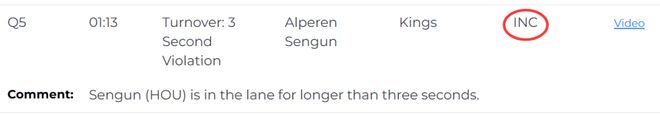 第四次同样是漏判,发生在距离加时赛结束还有1分13秒。申京在对方禁区内停留时间超过3秒,这是一次漏吹的三秒违例。火箭获利,国王吃亏。