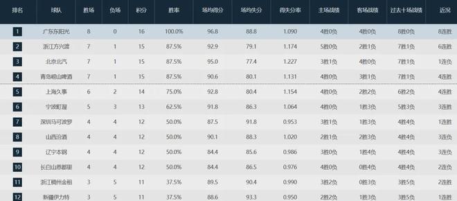 本赛季至今,北京队以7胜1负高居联盟第三,仅次于广东队(8-0)和广厦队(7-1),同样拥有豪华阵容的上海队(6-2)第五,没有杨瀚森的青岛队(7-1)第四。
