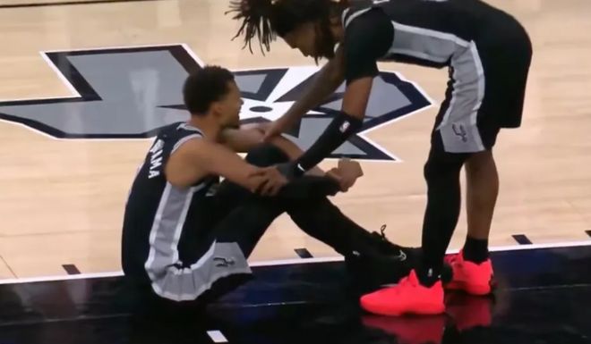 第四节刚开始,文班亚马争抢篮板,落地时不小心让膝盖过度伸展,于是直接退出了比赛。前两天,丹佛掘金队的核心球员约基奇也是膝盖过度伸展,直接退赛,至少需要休战4周。