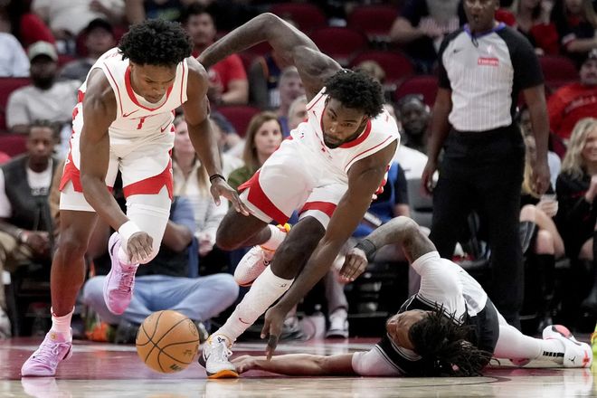 不过对于火箭队而言,球队最不缺的就是防守资源,尤其是在外线防守方面,目前队内小贾、伊森、阿门和芬尼史密斯,都可以作为托马斯和小波特的对位防守者,同时在对手换防时,由这几位组成的铁桶阵,通过不断换防,能够非常有效遏制对手寻找阵容弱点的可能。