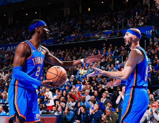 第二,随着时间推移,杨瀚森确实有进步,抢夺篮板球积极性很高,挡拆也兢兢业业,实际上开拓者三个中锋,从外扑防守占比来看,杨瀚森远高于克林根和罗威。从开拓者当下的排名处境来看,竞争季后赛门票不现实,那与其这样平庸下去,不如摆烂彻底点,只留克林根和杨瀚森两名中锋,趁着罗威还算健康,尽快换来重建资产。那如果主帅斯普利特就是不喜欢让杨瀚森出场,那也简单,让他去发展联盟锻炼,跟着开拓者出战却又得不到稳定时间,这一点最磨人。第三,雷霆似乎从被马刺三杀中缓过来了。