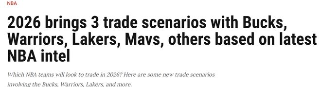 此外,洛杉矶湖人、金州勇士和森林狼均在寻求阵容深度的补强,以提升西部季后赛竞争力。即便是独行侠和步行者两队均未跻身各自分区季后赛行列,也有明确通过交易改善球队未来前景的需求。权威美媒《clutchpoints》的专栏记者布雷特·西格尔近日发文称,根据他的消息源显示,2026年交易截止日前,有可能达成的3笔交易,涉及了雄鹿、勇士、湖人、独行侠等队。一起来看看。