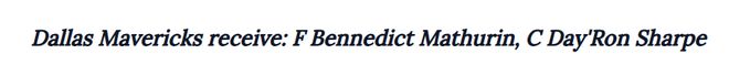 - 达拉斯独行侠:本内迪克特·马图林、中锋戴罗恩·夏普