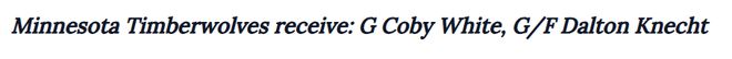 - 明尼苏达森林狼:科比·怀特、道尔顿·克内希特