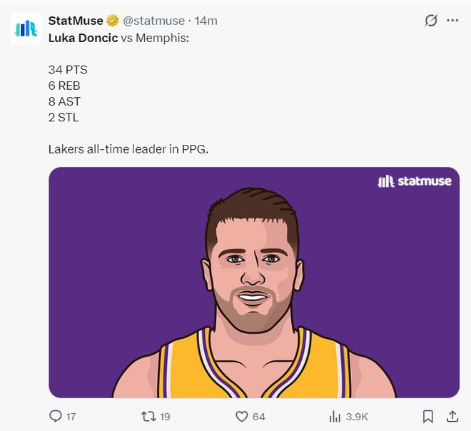 北京时间1月3日,湖人以128-121击败灰熊避免连败。很明显发胖后的东契奇效率日渐走低,而且因为摆脱防守的能力下滑失误率也居高不下,全场20个罚球追平生涯单场最多,三分7中1+6失误非常辣眼,所以他拿到34+8+6也遭各种炮轰