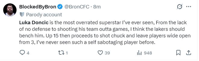 美媒:东契奇是我见过最被高估的超级球星,防守端各种漏防频频失分,湖人领先15分后他登场就丢分,我觉得湖人应该换下他。我从未见过如此自毁前程的球员。