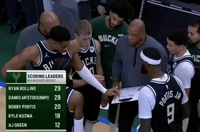 老李叫了暂停,可镜头给到雄鹿板凳席时