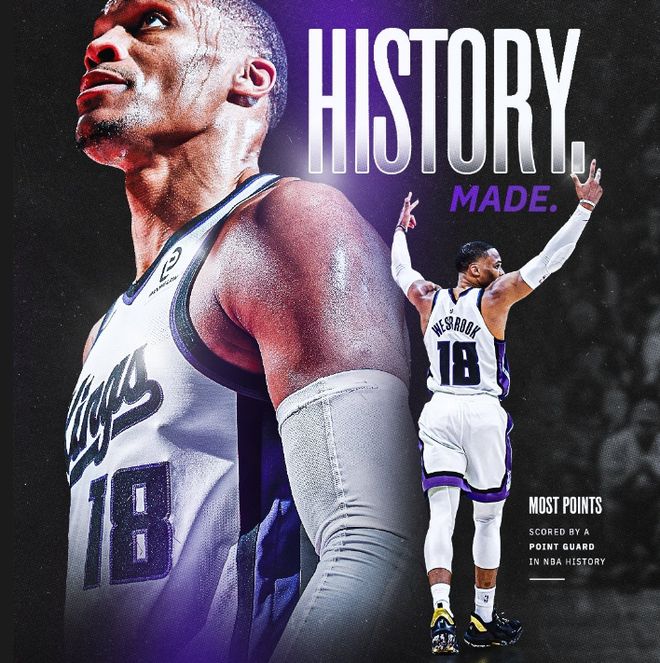 本场比赛,威少贡献17分、9篮板、6助攻的数据,这让他生涯常规赛总得分来到26711分,超越传奇大O,成为NBA历史控卫得分王!