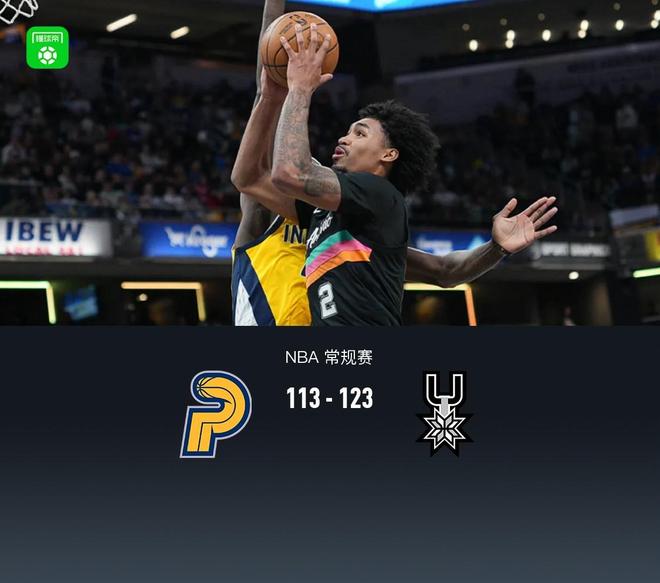 第四节,开节马刺凯尔登连续两记三分再度领先至13分,步行者西亚卡姆、谢泼德站出来得分缩小分差,马刺哈珀立刻回应,节中段马刺凯尔登、哈珀继续联手得分领先来到17分,后半节步行者内史密斯、西亚卡姆、内姆布哈德相继得分缩小分差,来到最后3分钟内姆布哈德、波特相继三分追至8分,马刺福克斯超远三分稳住局面,步行者无力继续反扑,最终步行者113-123不敌马刺。