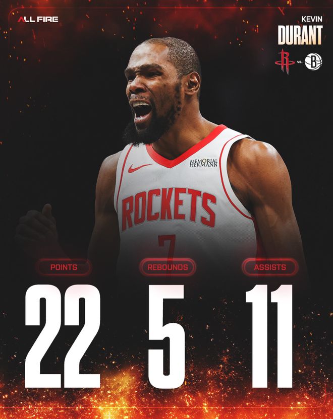此役后火箭拿到21胜10负跟西部第五的湖人拉开到1个胜场,火箭距离西部第三的掘金也只剩下1个胜场,杜兰特在这一波四连胜中的贡献是火箭最高的。