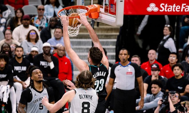 两次大帽同届榜眼秀迪伦-哈珀,这球还为开拓者拿回了球权。