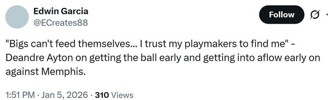艾顿本人赛后也再度谈及球权问题:“大个子不能自己给自己喂球,我登场后就是拼尽全力,我相信球队的组织者能找到我。”